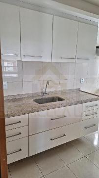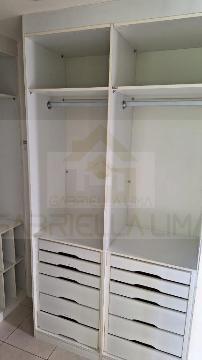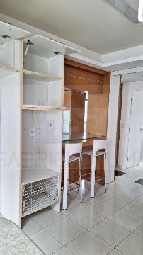 Piso em porcelanato, muito bem servido de armários, projetado com cozinha que se comunica com sala.