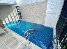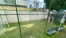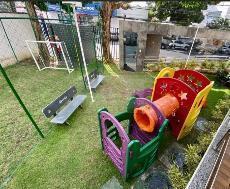 O edifício possui piscina, playground, campo de futebol e salão de festas.