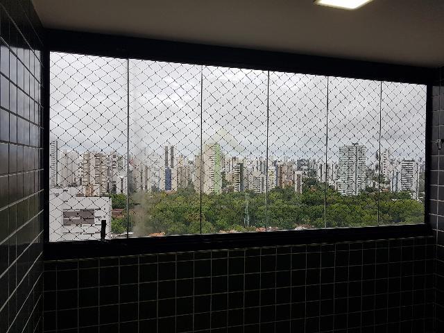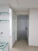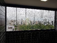 Varanda com cortina de vidro.