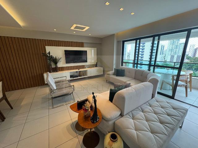 Acabamento de alto padrão da Construtora Moura Dubeux, com piso em porcelanato, armários planejados e iluminação projetada. São 3 vagas de garagem cobertas.